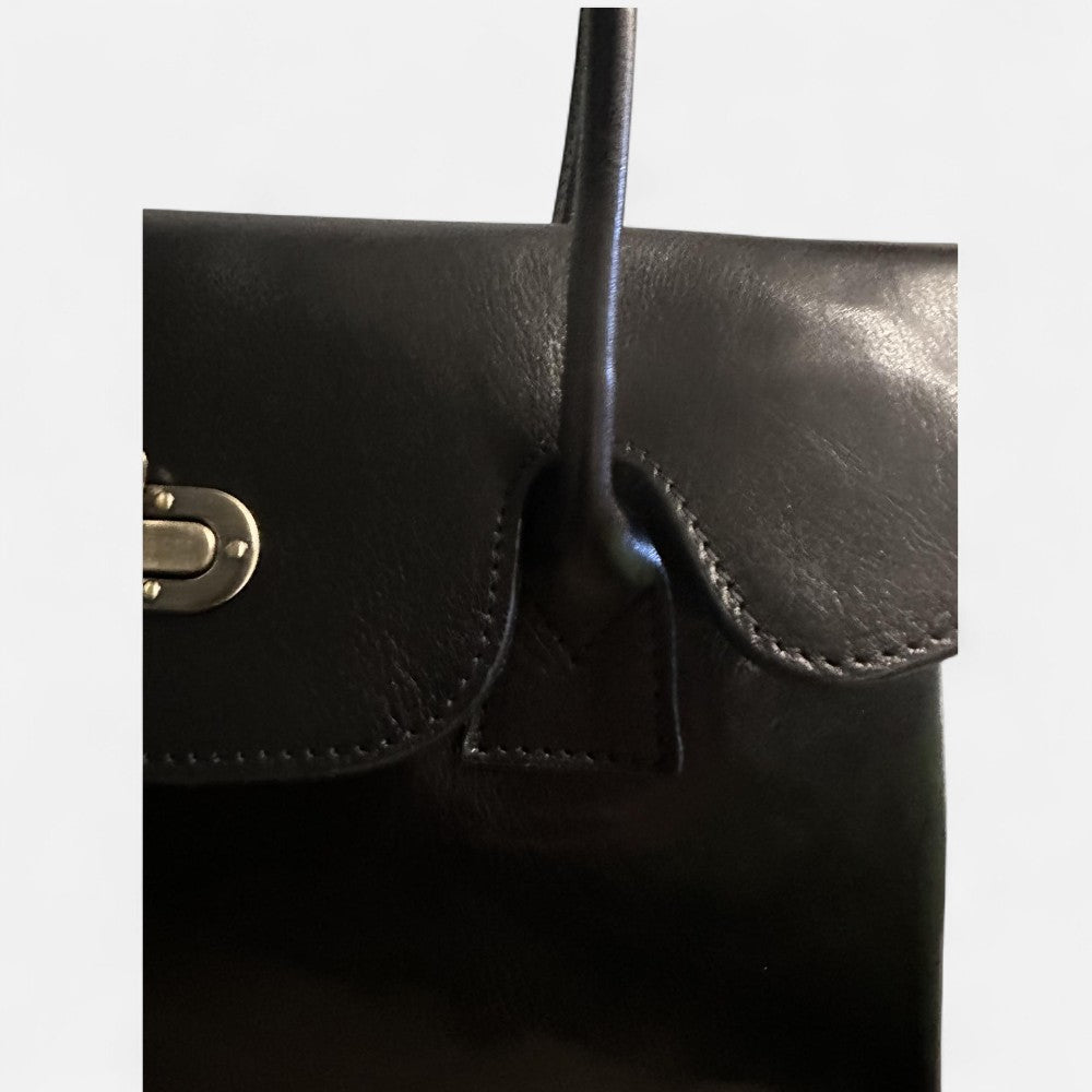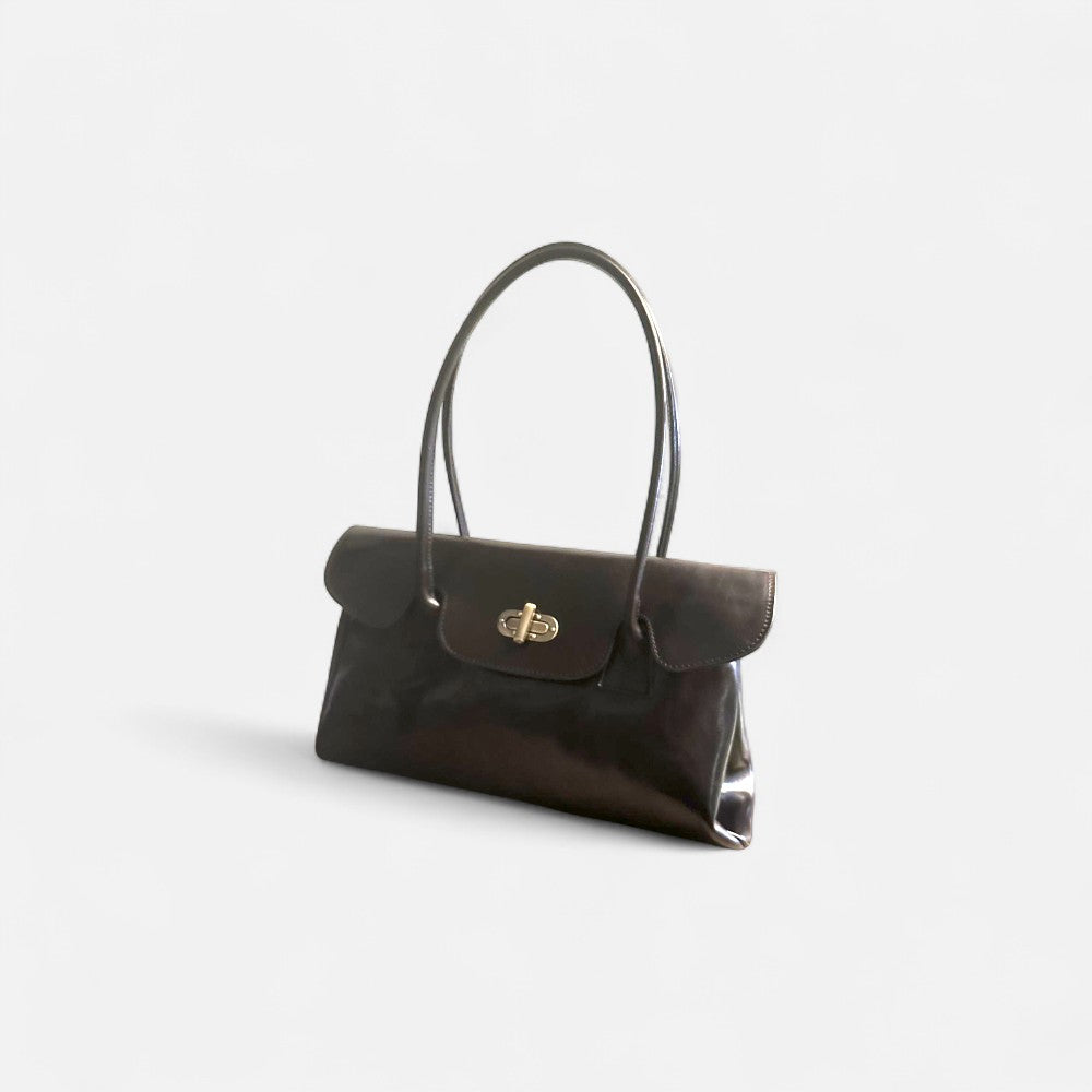 Este modelo de inspiración italiana es ideal para quienes buscan un bolso con presencia y carácter . Su tamaño medio grande ofrece amplitud para llevar tablet, documentos, agenda, cartera, móvil y más, con varios compartimentos interiores que garantizan orden y practicidad. Fíjate que las asas son largas para hombro y lo puedes llevar muy cómodamente, tiene muy poco peso, el herraje es latón envejecido. Perfecto como bolso de trabajo, de viaje o como pieza clave en looks de diario más formales. El interior forrado, marcando la fabricación Italiana, con dos departamentos bien diferenciados y un bolsillo en cada uno de los laterales interiores.