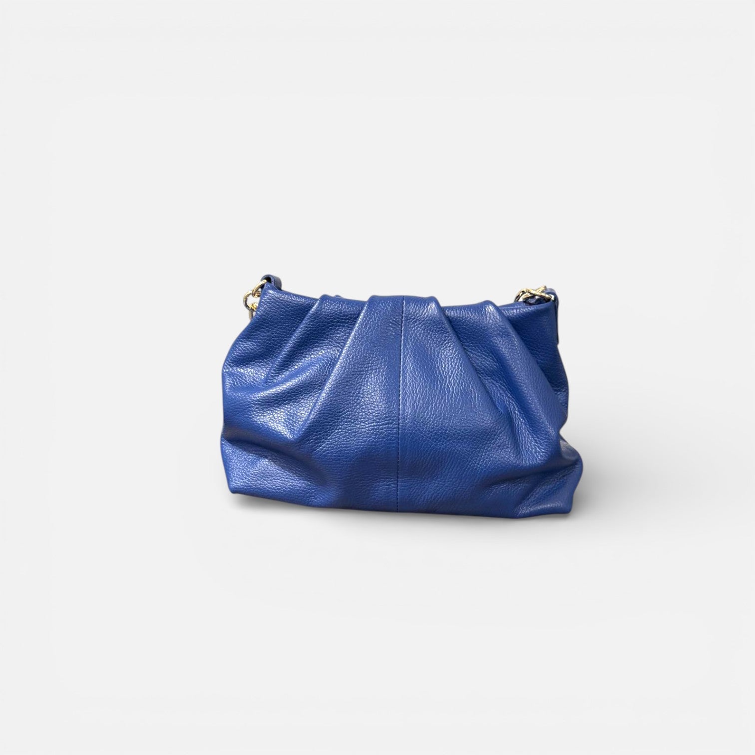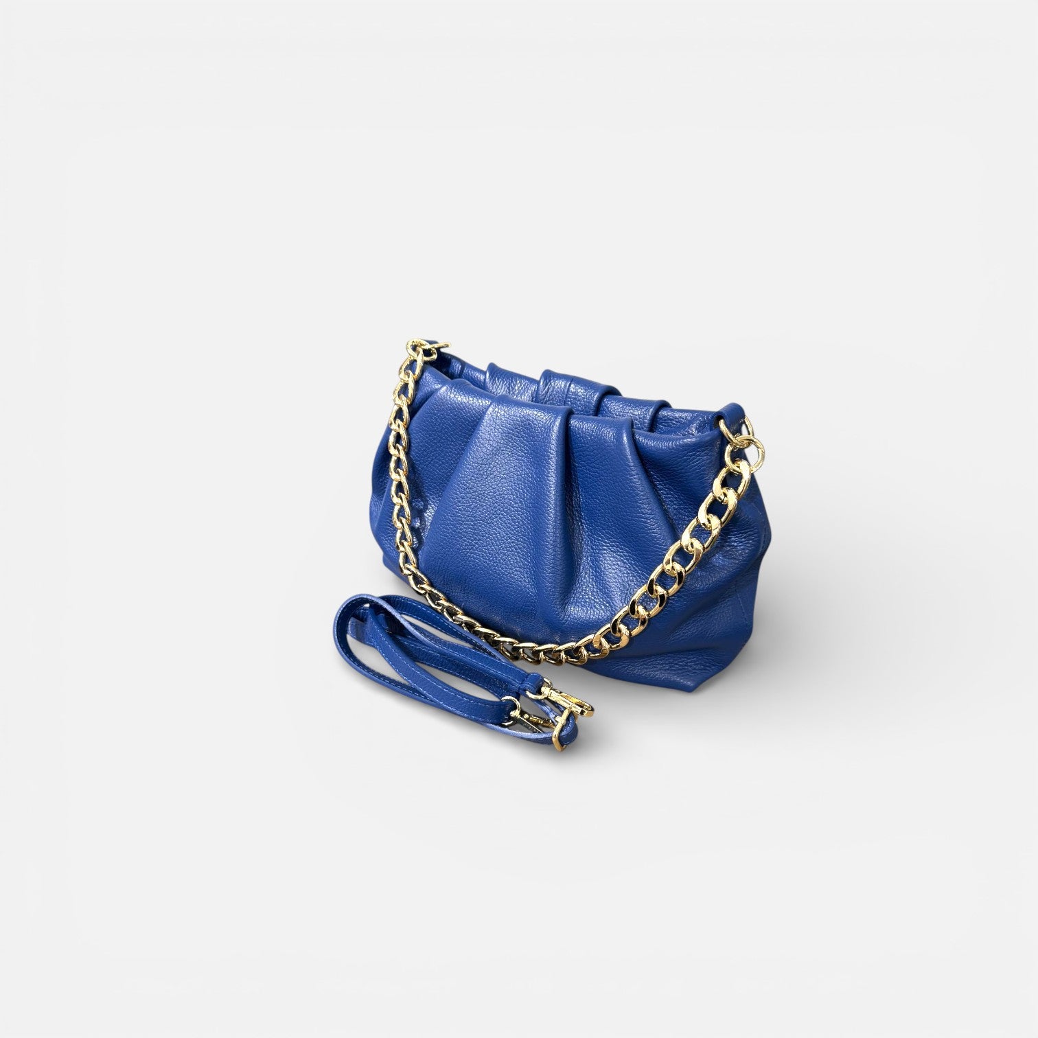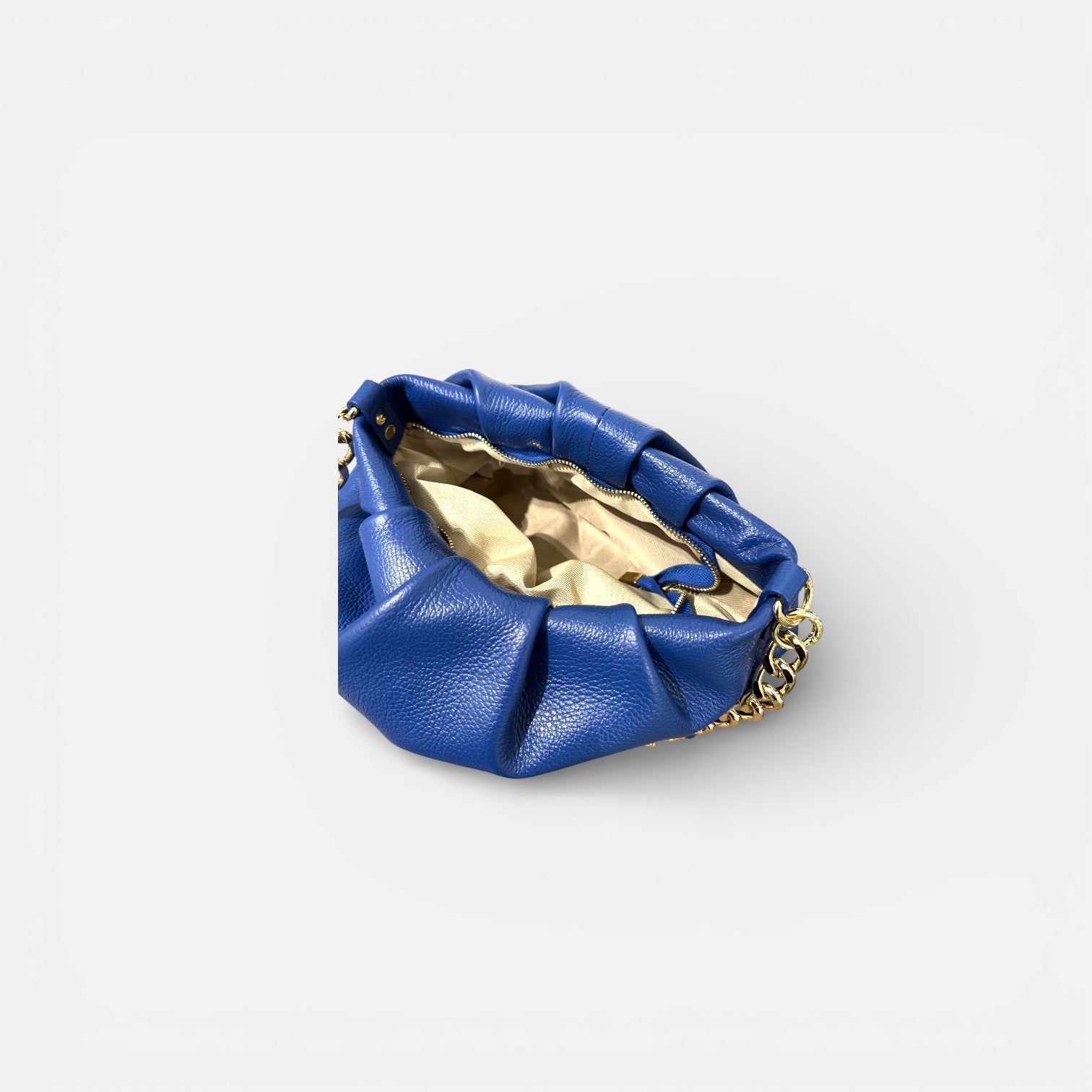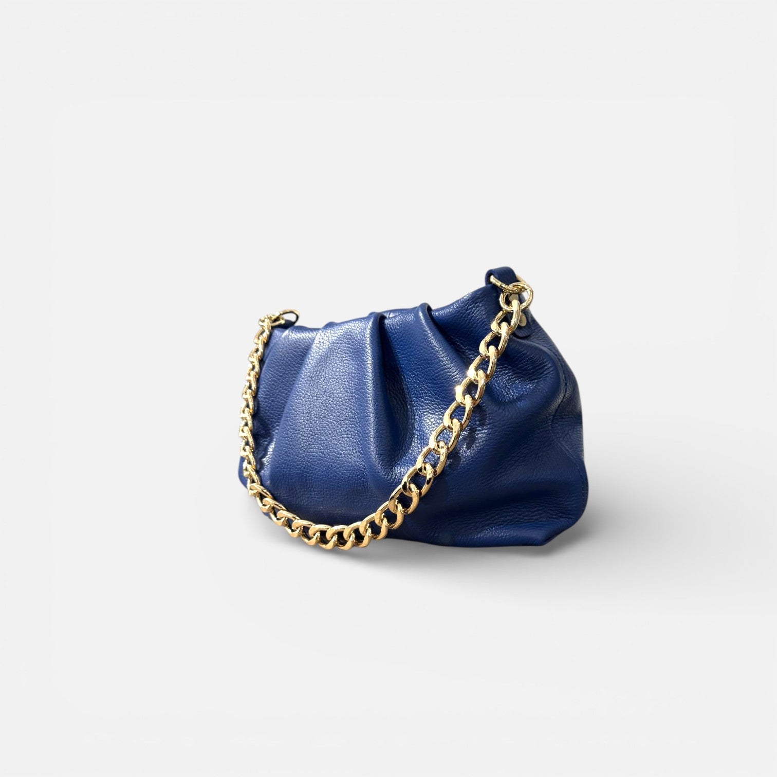 "Descubre la sofisticación y versatilidad del bolso tipo Pouch de piel de vacuno de grano. Con un elegante cierre de cremallera y una cadena dorada que agrega un toque distintivo, este bolso es el complemento perfecto para cualquier ocasión.